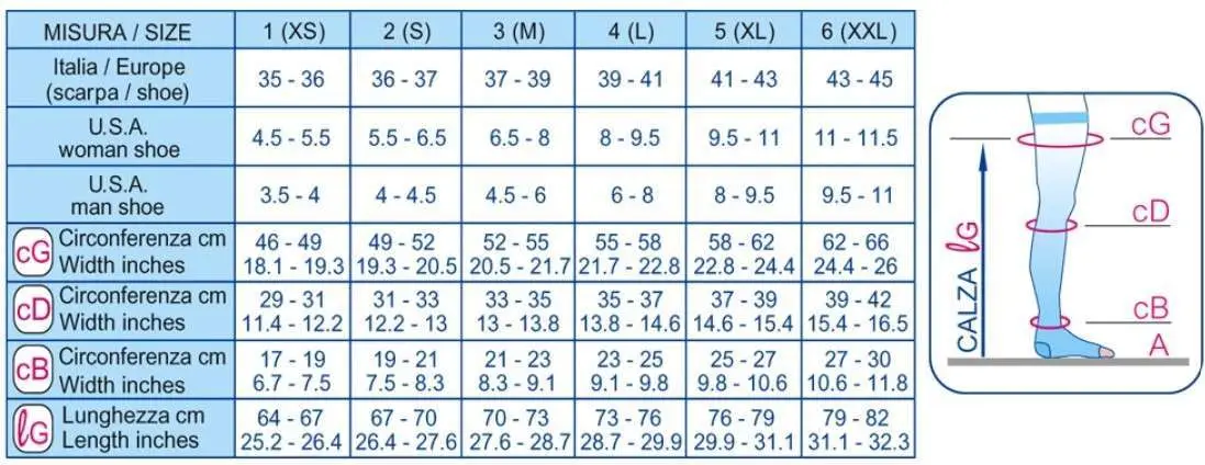 -  Tallone rinforzato che assicura il giusto posizionamento della calza in caviglia e la corretta compressione lungo la gamba.